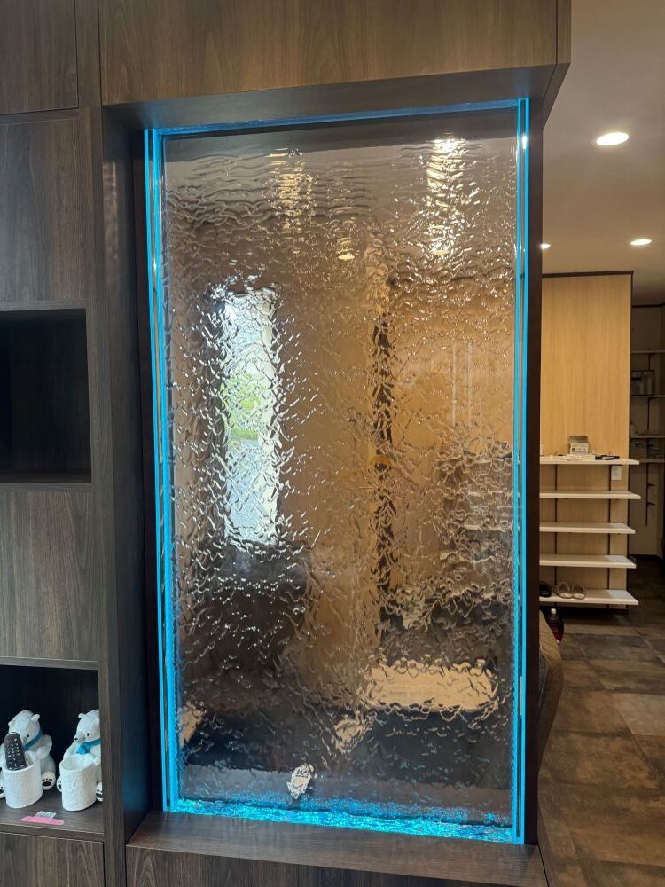 二枚のパネルの間を、さらさらと水が流れ落ち、細かな気泡がダンスをしているような…そんな不思議できれいなインテリアです!